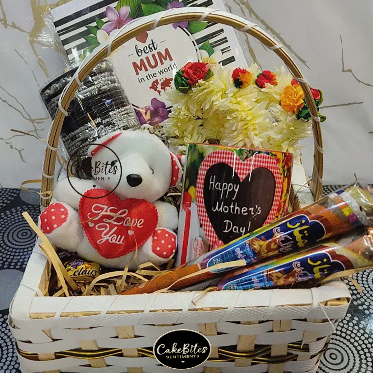 • 1x Teddy Bear Small • 1x Wish Card • 1x Small Square Wooden Basket • 1x Customized Coffee Cup • 2x Mehndi Cone
